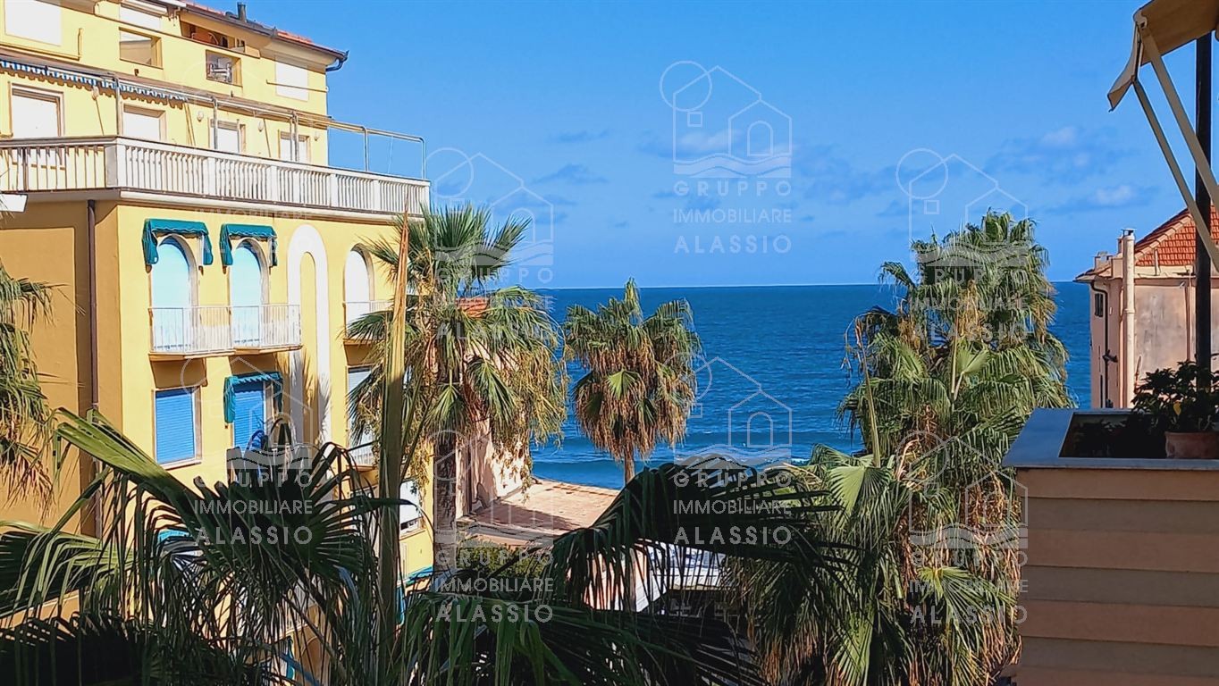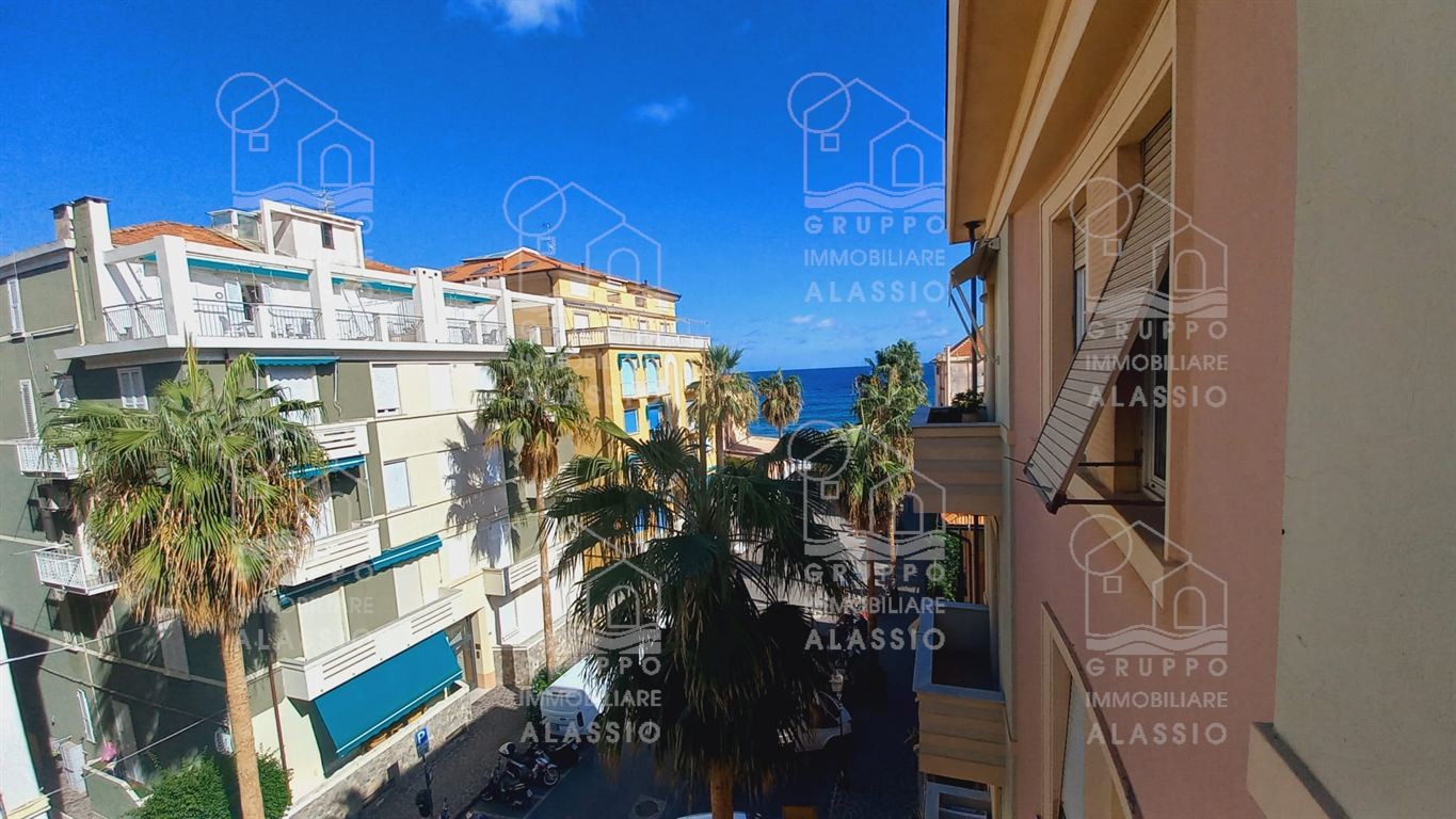 Alassio, a pochissimi passi dal mare, appartamento al terzo ed ultimo piano con vista del mare dal balcone.