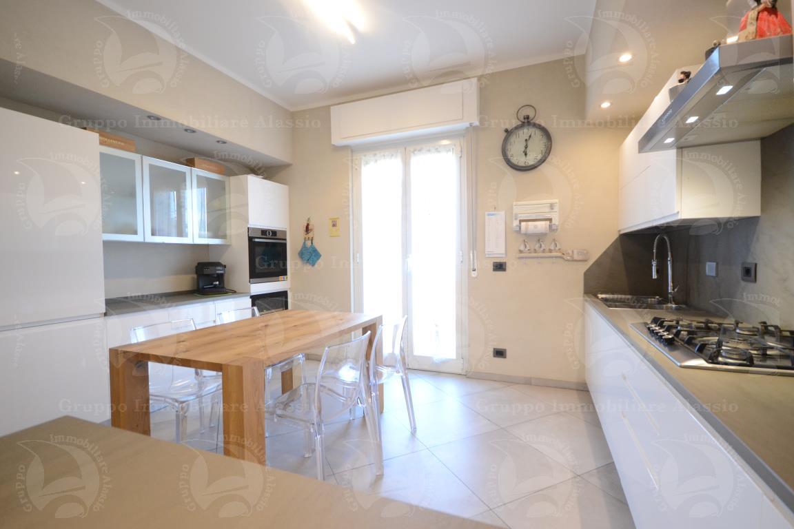 Alassio, proponiamo ampio appartamento vista mare ristrutturato e arredato, soleggiato da mattina a sera. l'appartamento è composto da un grande soggiorno con cucina a vista e ampia balconata vista mare, tre camere da letto matrimoniali, doppi servizi, ripostiglio e balcone. completa la proprietà un ampio locale sottotetto e il posto auto condominiale. riscaldamento autonomo e basse spese condominiali.