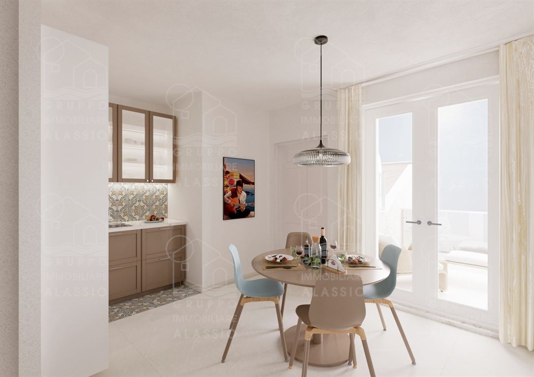 Prenotiamo appartamenti di imminente realizzazione nel centro di alassio a meno di 150 metri dalla spiaggia. in una elegante e piccola palazzina vengono realizzati 7 appartamenti di varie metrature con terrazzo e posto auto di proprietà. l'attuale edificio verrà totalmente sventrato e ristrutturato con interventi di edilizia antisismica che ne miglioreranno la sicurezza strutturale. verranno inoltre adottate varie soluzioni per l'efficienza energetica che porteranno l’intero stabile in classe energetica a. gli appartamenti sono tutti trilocali, di varie metrature, con uno o due bagni. al piano terra gli appartamenti sono privi di barriere architettoniche e godono di un piacevole spazio a giardino. gli appartamenti al primo e al secondo piano hanno ognuno un proprio terrazzo abitabile con accesso dal soggiorno e ottima esposizione al sole. il piano attico, di oltre 130 mq, è corredato di solarium attrezzato e di mini piscina. ampia scelta di materiali e finiture per personalizzare l'appartamento secondo i vostri gusti. le immagini a corredo di questo annuncio sono state realizzate al computer al solo fine di agevolarne la comprensione, quindi potrebbero non corrispondere al progetto definitivo. per maggiori informazioni si prega di prendere contatto con l'agenzia.